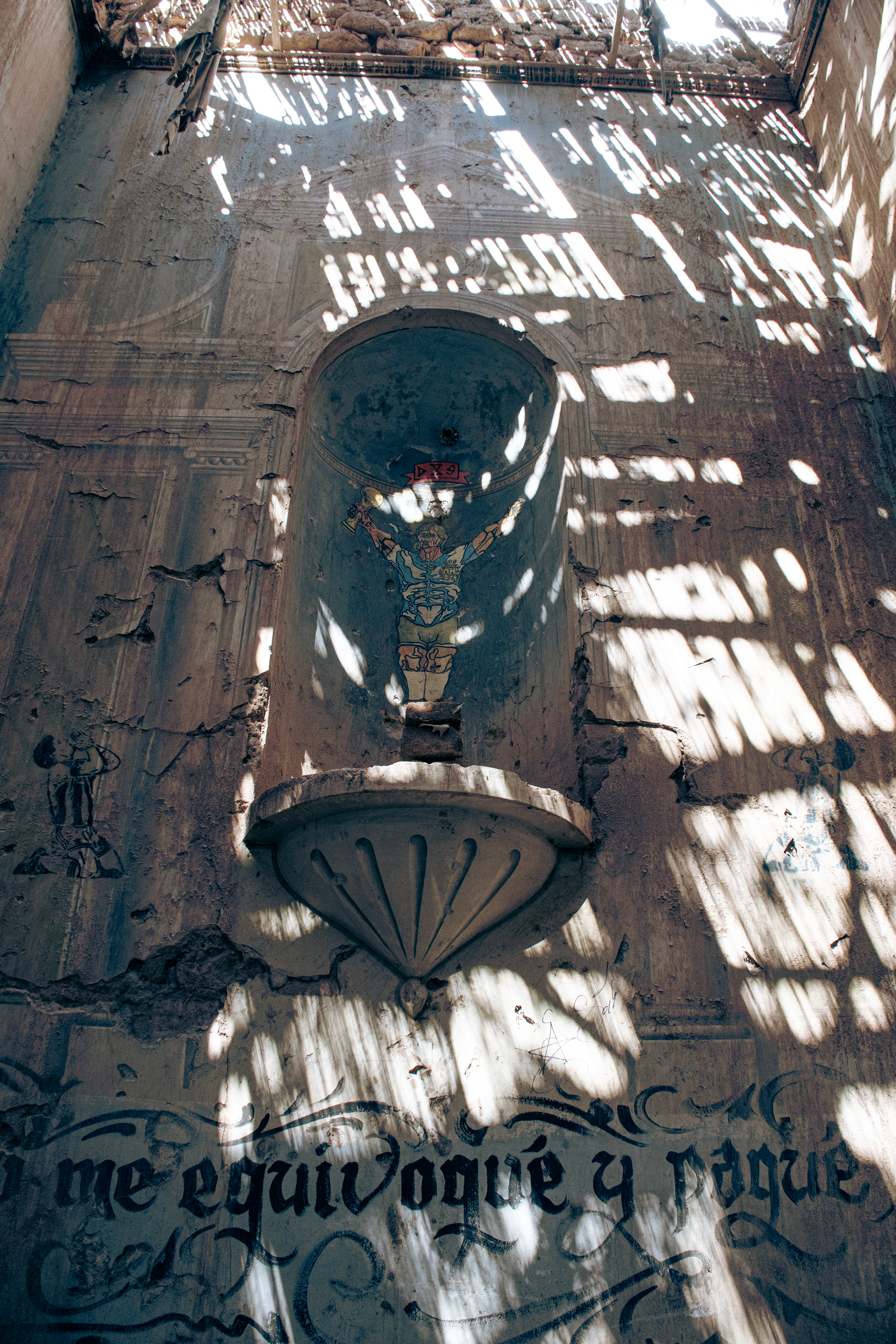 Me vi la entrevista entera. Era, efectivamente, una capilla abandonada que algunos artistas callejeros mendocinos —fanáticos del Diego, como toda persona de bien— habían tomado e intervenido, cada uno con su estilo, pero con una misma musa inspiradora: EL DIEGO.